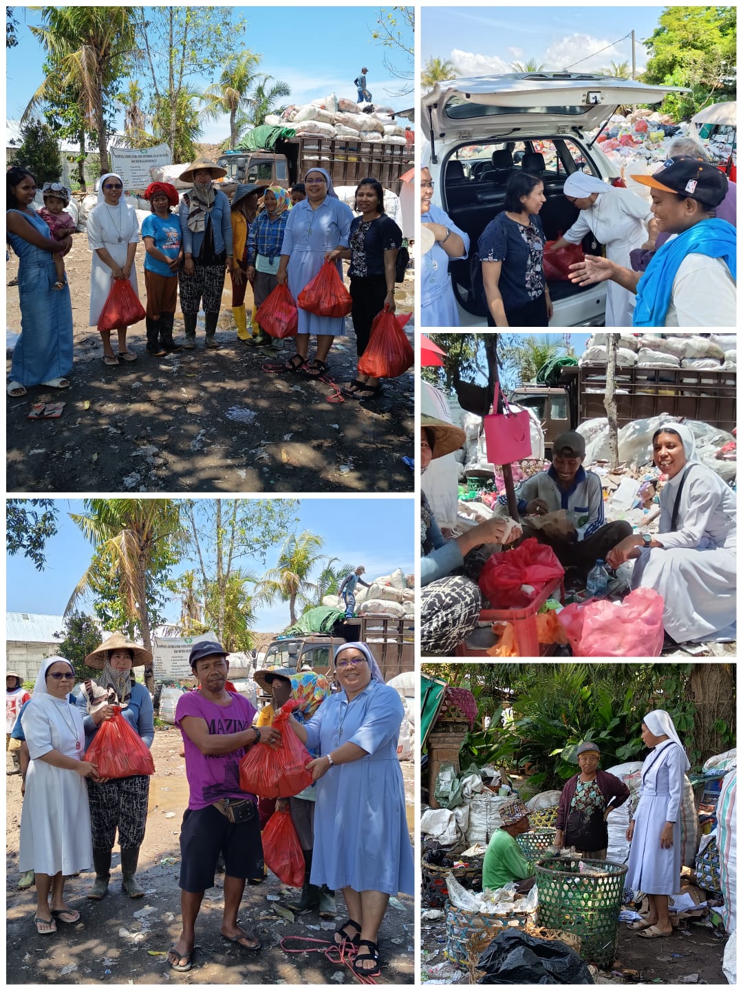 La periferia di Giacarta (capitale dell’Indonesia) si sveglia ogni mattina con il rumore incessante dei motorini e il vociare dei mercati. Le strade sono un caleidoscopio di colori: bancarelle di frutta tropicale, venditori di cibo di strada, bambini che corrono tra le file di case in lamiera. E poi, i “raccoglitori di rifiuti”, uomini e donne che ogni giorno si muovono tra cassonetti e discariche, piegati a cercare materiali da rivendere per pochi spiccioli. È a loro che le comunità canossiane di “Santa Maddalena, Santa Bakhita e del Noviziato” hanno portato 150 pasti caldi. Non un dono assistenziale, ma un segno di rispetto e riconoscimento per chi, pur stando ai margini, sostiene silenziosamente e operosamente il funzionamento della città.
