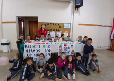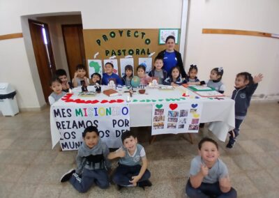 Nel Centro Educativo Infantile Santa Magdalena de Canossa, in Paraguay, si è celebrato il Mese Missionario, un percorso formativo e spirituale che ha coinvolto le tre sezioni del Pre-Jardín (3 anni), Jardín (5 anni) e Preescolar (6 anni). L’attività ha previsto la divisione delle classi in gruppi contrassegnati dai colori dei continenti: rosso per l’America, blu per Asia e Oceania, verde per Africa ed Europa.