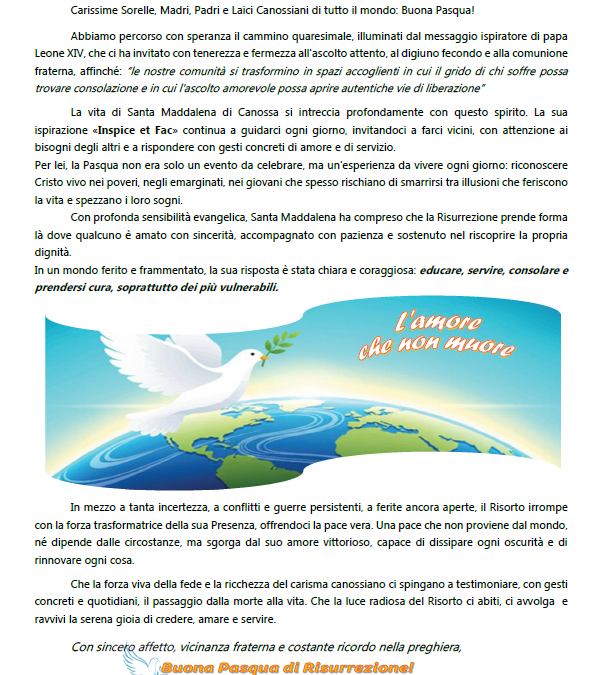 • Gli auguri di Pasqua della Madre Generale Sandra Maggiolo e del Consiglio! 3 Aprile 2026