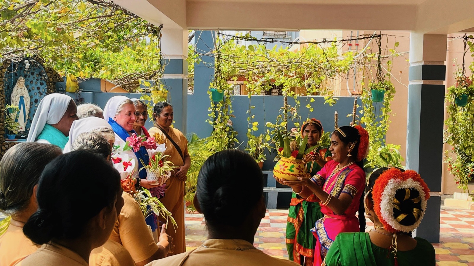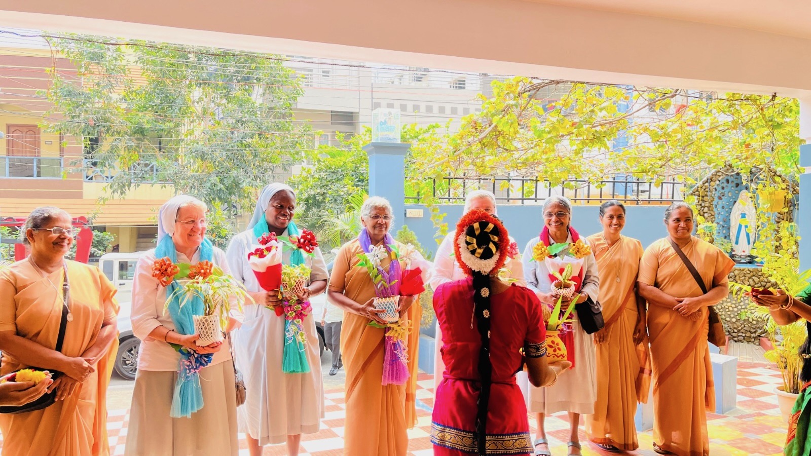 Conclusa la visita nella Provincia dell’India Sud, la Madre Generale, insieme al Consiglio Generale, ha raggiunto Visakhapatnam per la Visita Canonica della Delegazione Sud-Est India. L’accoglienza, semplice e festosa, ha espresso la gioia della comunione: la Superiora Delegata Sr. Daisy Antony, con il suo Consiglio, le sorelle e le aspiranti, ha dato il benvenuto con gesti e segni della tradizione locale.